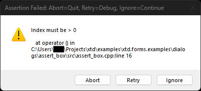 switch(assert_box::show(*this, "Index must be > 0", diagnostics::stack_frame::current())) {