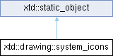 Each property of the xtd::drawing::system_icons class is an xtd::drawing::icon object for Windows system-wide icons. This class cannot be inherited.