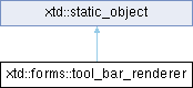 | static void | draw_tool_bar (const xtd::forms::style_sheets::style_sheet &style_sheet, xtd::drawing::graphics &graphics, const xtd::drawing::rectangle &bounds, xtd::forms::visual_styles::form_state form_state, const std::optional< xtd::drawing::color > &back_color, const std::optional< xtd::forms::border_style > &border, xtd::forms::border_sides sides) |