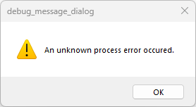 dialog.message("An unknown process error occured.");