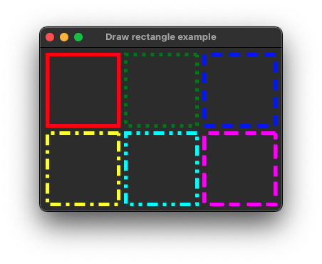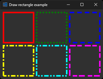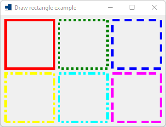 e.graphics().draw_rectangle(dash_pen, 230, 10, 100, 100);