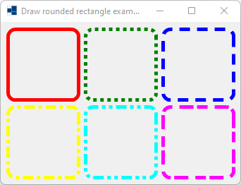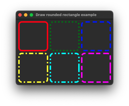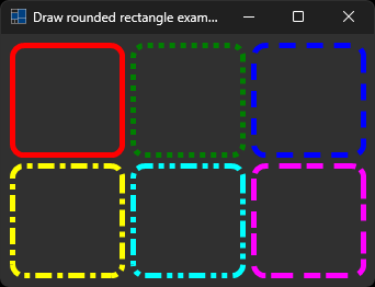 e.graphics().draw_rounded_rectangle(dash_pen, 230, 10, 100, 100, 10);