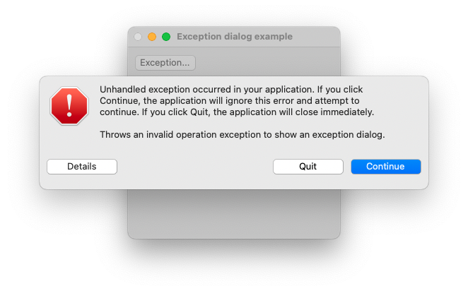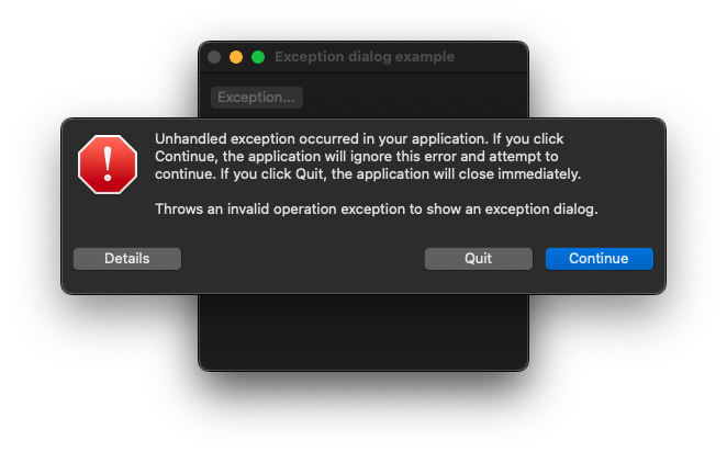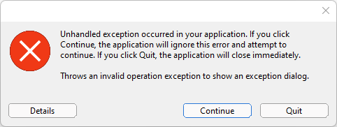 demonstrates the use of xtd::forms::exception_dialog dialog.