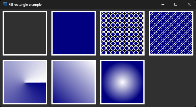 e.graphics().fill_rectangle(drawing_2d::hatch_brush {drawing_2d::hatch_style::diagonal_brick, color::white, back_color}, rectangle {520, 10, 150, 150});