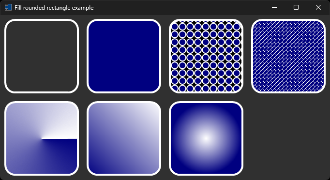 e.graphics().fill_rounded_rectangle(drawing_2d::hatch_brush {drawing_2d::hatch_style::diagonal_brick, color::white, back_color}, rectangle {520, 10, 150, 150}, 20);