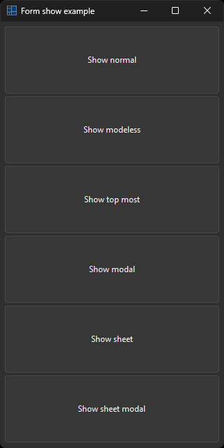 auto dialog = form::create("dialog show sheet modal", drawing::size {250, 100});