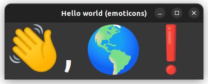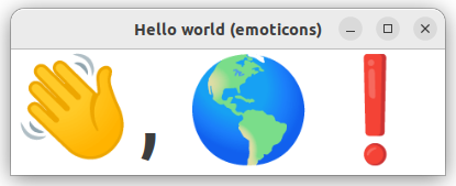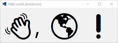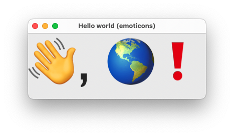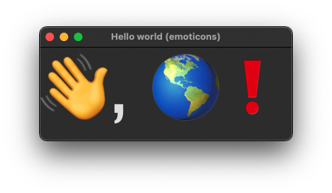 label.text(emoticons::waving_hand_sign + ", " + emoticons::earth_globe_americas + emoticons::heavy_exclamation_mark_symbol);