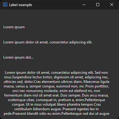 label2.text("Lorem ipsum dolor sit amet, consectetur adipiscing elit.");