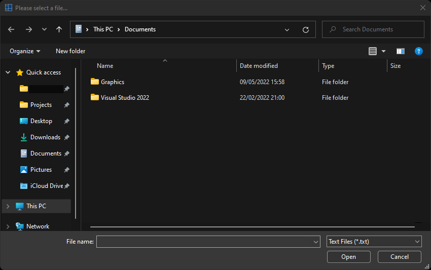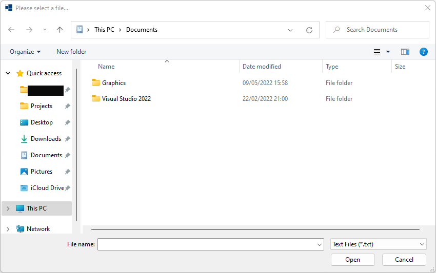 auto res = open_file_box::show(file_name, *this, "Please select a file...", ".", "Text Files (*.txt)|*.txt|All Files (*.*)|*.*");