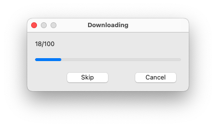 progress_box::show(*this, "Downloading", "Please wait...", 0, 0, 100, progress_box_options::show_cancel_button | progress_box_options::show_skip_button);