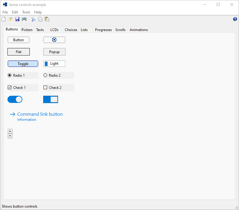 case 7: status_bar1.text("Shows scroll controls"); break;