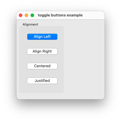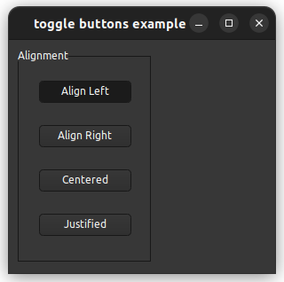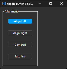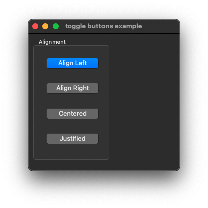 auto toggle_button_justified = toggle_buttons::justified(group_box_alignment, false, check_state::unchecked, {20, 170});